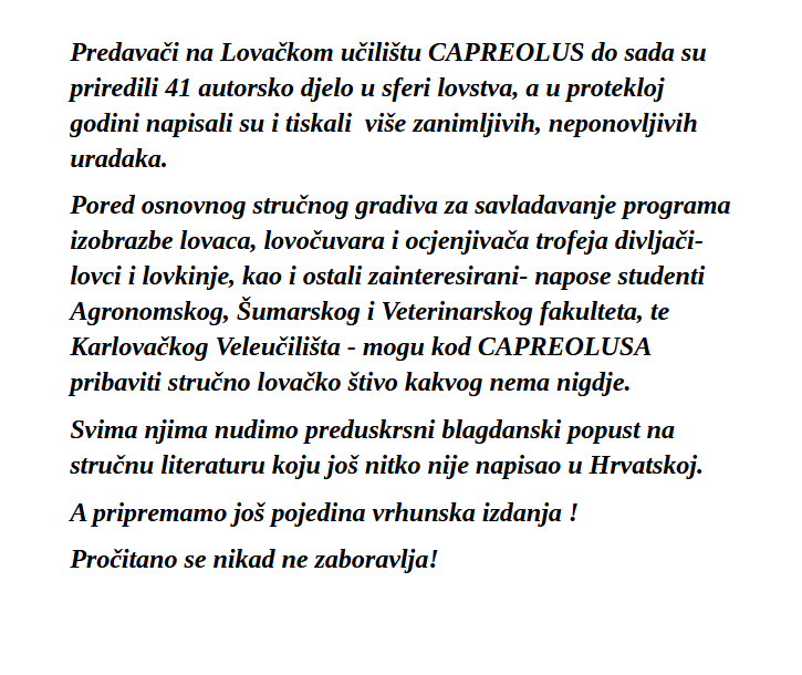 SLOBODNO PITAJTE, ZOVITE, DOĐITE DO NAS U SPLITU, KLOVIĆEVA 13 pou-capreolus.hr