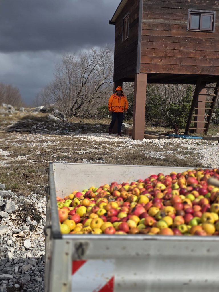 Vrijedni lovci OBER LOVNOG TURIZMA ,pod vodstvom glavnog lovnika Miljenka Barića Baje, u predahu lovne sezone na divlje svinje- potrudili su se i u državno lovište ŠIBENIK-VRGORAC dovezli tonu i pol zrelih jabuka iz skladišta vrgoračkog LM COMERCA vlasnika i direktora ,višegodišnjeg donatora LUJE MIHALJEVIĆA!